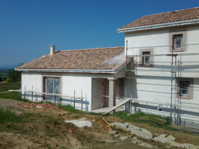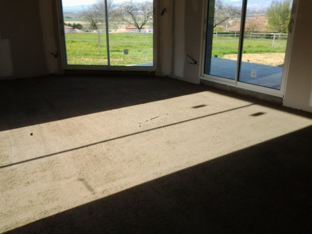 Pour la construction de cette maison RT 2012 nous avons renforcé l’isolation du sol par interposition d’un TMS SI de chez Efisol de 80 mm avec un R = 3,70 m².K/watt sur lequel un plancher chauffant à circulation d’eau est mise en place, rien de mieux pour respecter la norme RT 2012.