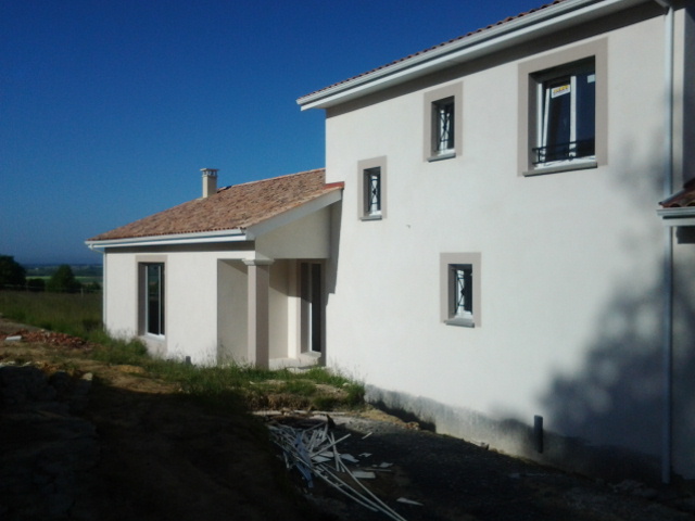 Cette construction de maison individuelle contemporaine/moderne est construite aux abords de Vienne (38200) dans le département de l’Isère sur une magnifique parcelle de terrain isolée de 1600 m² avec une vue magnifique sur la vallée du Rhône, ce qui explique ses terrasses couvertes exposées Sud et Sud-Ouest.